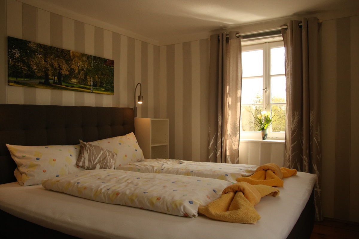 Die gemütliche Ferienwohnung II, 53 m² im 1. OG und 47 m² im 2. OG, in den Fachwerkgebäuden an der Itz ist mit einem Doppelzimmer und zwei Kinderzimmern bestens geeignet für Familien bis zu vier Kindern. Alternativ ist die 1. Etage separat für bis zu zwei Personen buchbar.